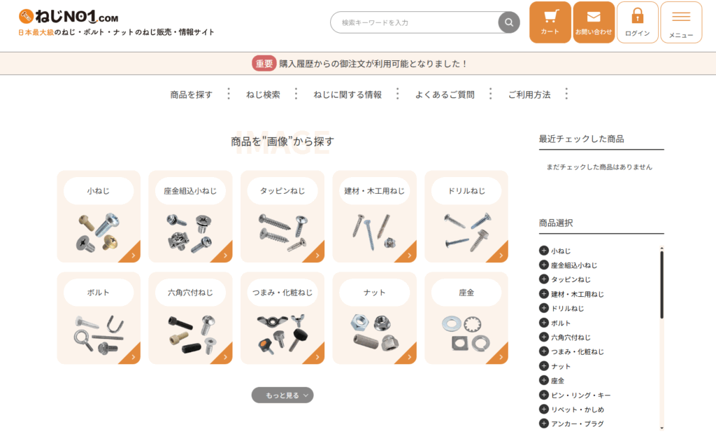50万点のデータからネジ、ボルト、ナット、ワッシャーを探せるねじオンライン販売サイト